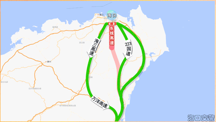 (六)东线高速海口管段车多缓行,进出城高峰时段,建议途经驾驶人择道绕行进出城:
