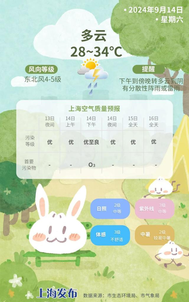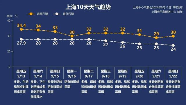 9月15日(周日):多云到阴转阴有阵雨或雷雨,28~33℃