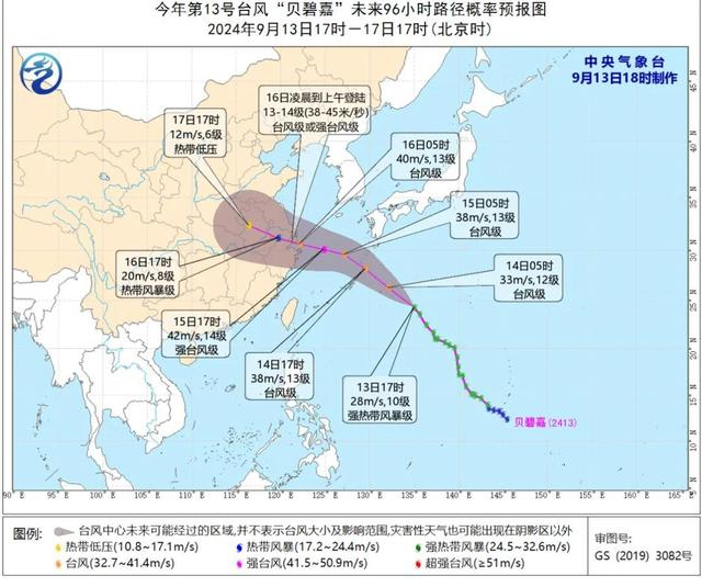 昨天17时今年第13号台风“贝碧嘉”中心位于距离琉球群岛那霸市东偏南方向约770公里(北纬24.3度、东经135.0度),强度为强热带风暴级。