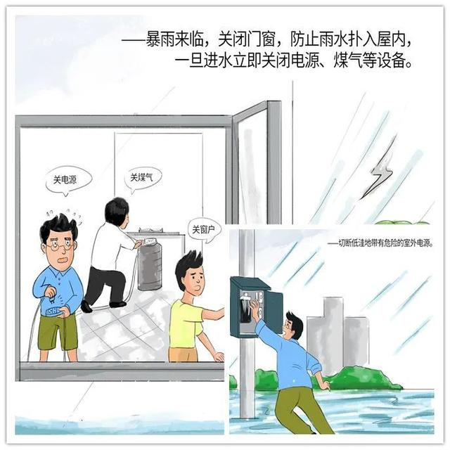5. 平房或者底层居民家中一旦发现室外积水可能漫进屋内,应及时切断电源,防止触电伤人;