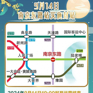 2024年上海旅游节将于9月14日至10月6日举行,9月14日19:45将在南京东路步行街举行旅游节开幕式大巡游活动,根据公安要求,当日19:00至运营结束,2、10号线南京东路站实施封站、列车不停站通过。封站时段内,在2、10号线南京东路站不能上下车,地铁站出入口也将同步关闭,乘客不能进出车站。届时,车站将加强站内广播宣传、导向设置、站台站厅秩序维护等工作。