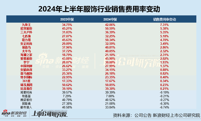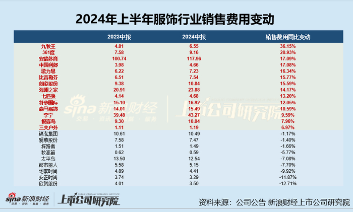 服饰半年报|361度、太平鸟等毛/净利率双降 安踏体育半年营销开支超百亿、锦泓集团销售费用率超50%成营销王