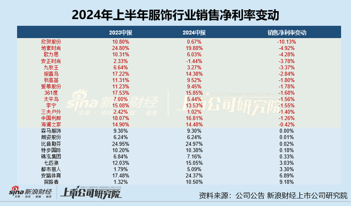 多数公司净利率不足15% 361度、太平鸟、中国利郎等5家公司毛利率净利率双双下滑