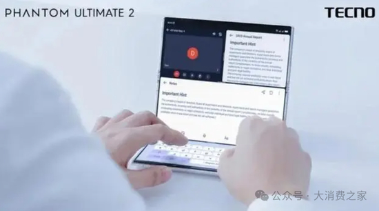 在9月11日华为MATEXT三折叠屏手机正式发布前,今年8月28日,传音控股旗下品牌TECNO就抢先一步正式发布了其最新款三折叠屏手机概念机——PhantomUltimate 2,雄心勃勃向高端智能折叠屏技术的进一步进军。