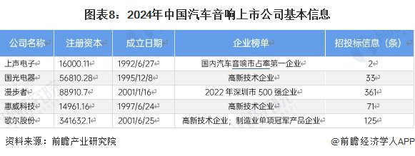 2、汽车音响行业上市公司基本信息对比