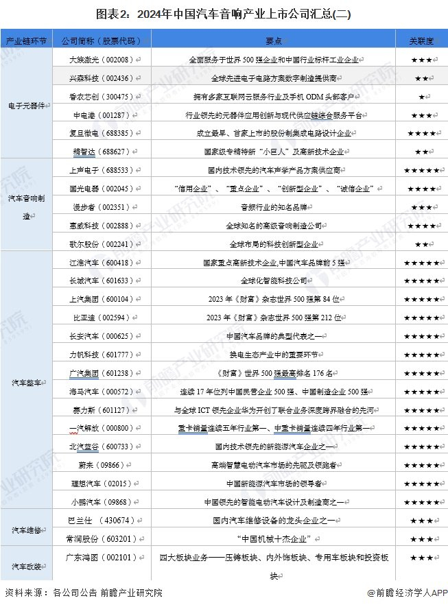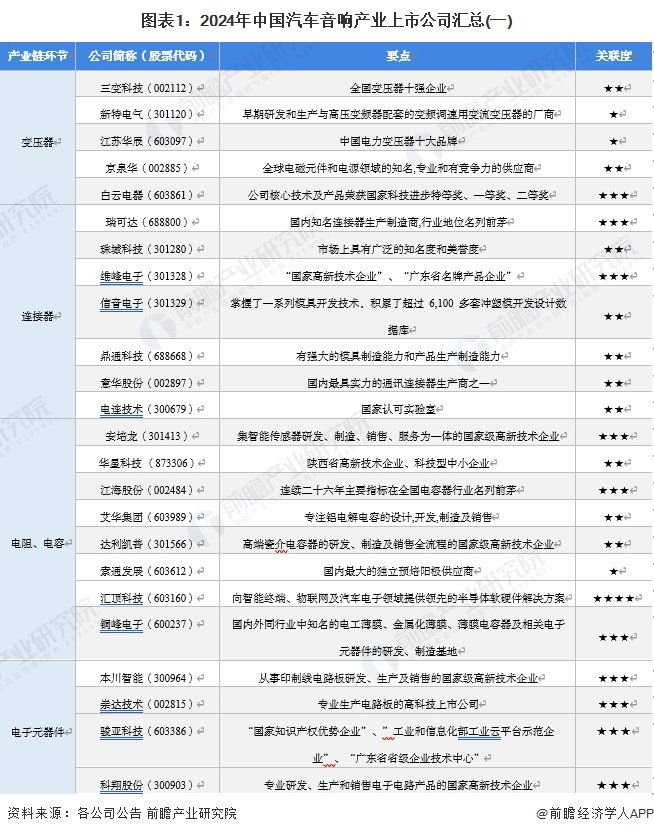 1、汽车音响产业上市公司汇总
