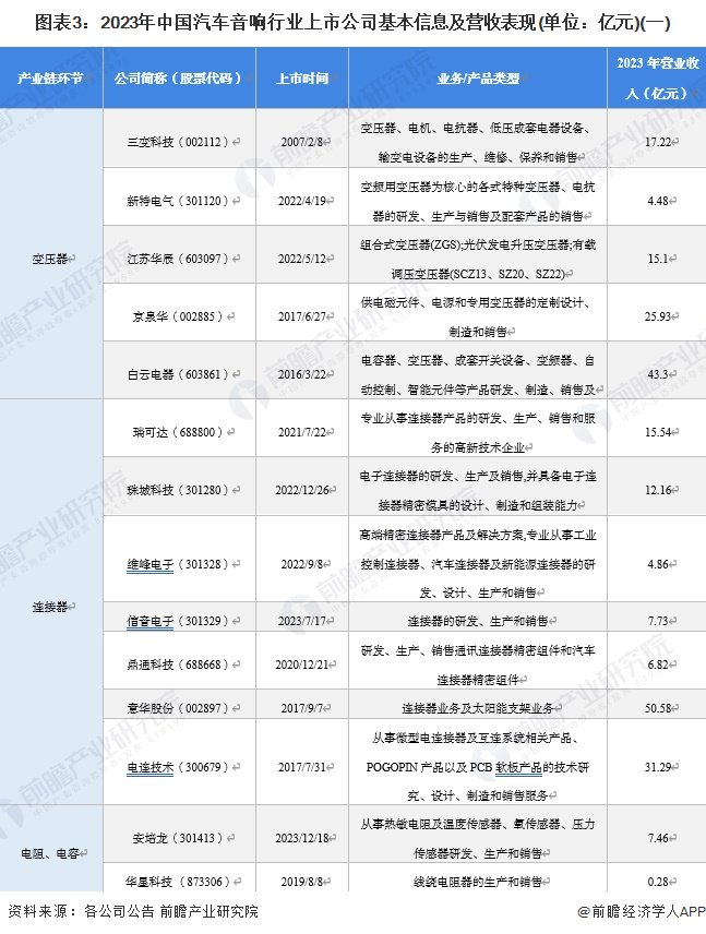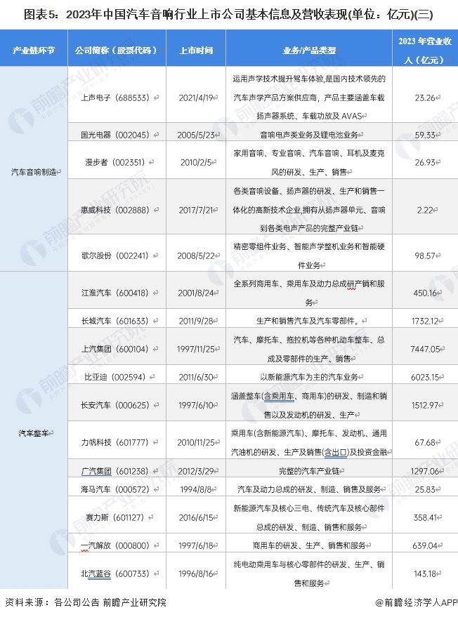 【最全】2024年汽车音响产业上市公司全方位对比(附业务布局汇总、业绩对比、业务规划等)