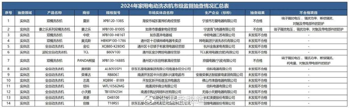 质检资讯|南通市监局家用电动洗衣机抽检:夏新、PANDA熊猫等不合格