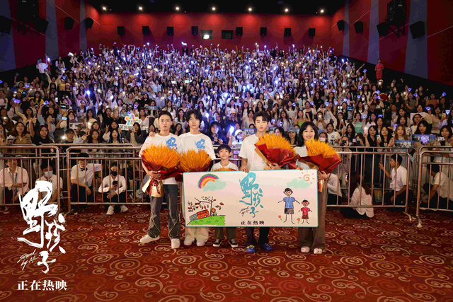 9月13日,电影《野孩子》导演殷若昕、演员王俊凯、陈永胜、关子勰、迟兴楷共同现身郑州,在当地影院与观众近距离交流互动,分享银幕内外的创作故事,倾听大家的观影感受。观众们纷纷点赞影片所带来的温暖和感动,表示“故事很有现实意义”“被流浪兄弟深深感动到”,郑州影协代表也动情地分享感言,对电影表示肯定。主创们也暖心赠送全场观众向日葵,寓意着大家“向阳而生”。影片上映首日便成为当日票房冠军,多个热搜话题连续登榜。口碑热度不断攀升,广受大家好评。主创们也在路演期间,真诚感谢每位观众的支持。目前电影正在热映中。