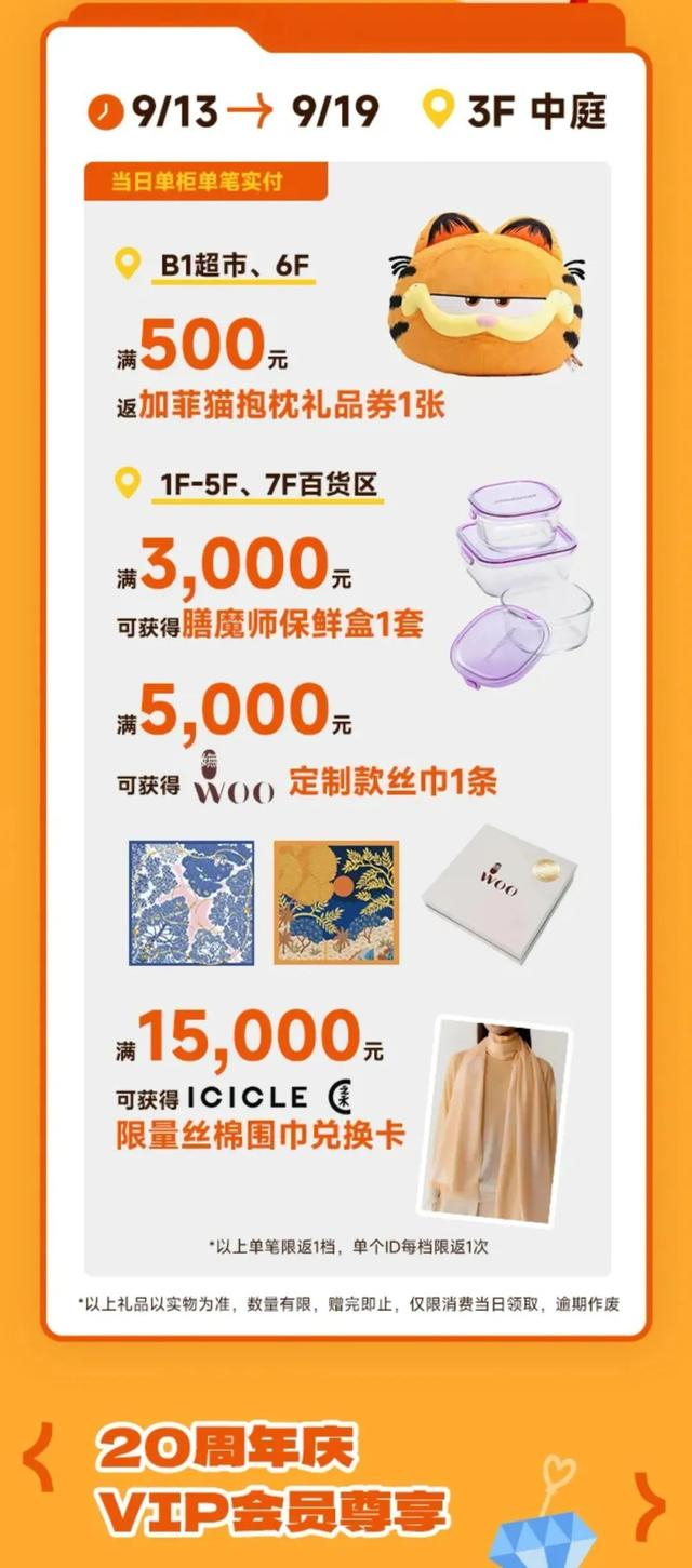 (3)9/20—9/22:满额抽奖,全馆百货类单柜单笔实付满2000可参与抽奖