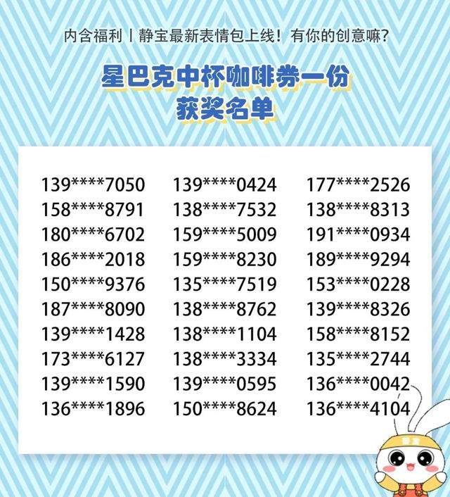 此前静宝推送的《内含福利丨静宝最新表情包上线!有你的创意嘛?》中奖名单已经出炉!详见↓