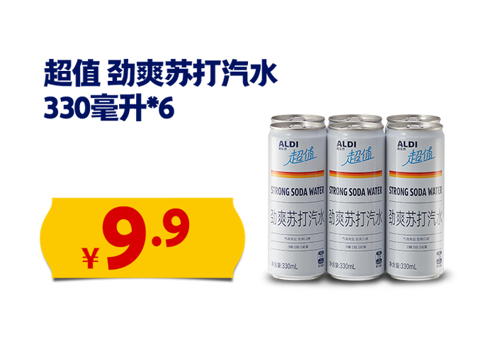 奥乐齐超值劲爽苏打汽水,330毫升6罐装,标价9.9元;港式冻柠茶1kg装,标价9.9元;悠白全脂牛奶1L装,标价8元;全麦吐司面包250g装,标价只要6.9元……