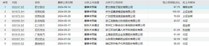 此外,据大河财立方记者不完全统计,年内共有9家A股上市公司新提出分拆上市,其中,卧龙电驱、广电电气、晶瑞电材辅导备案登记已获相关交易所受理。