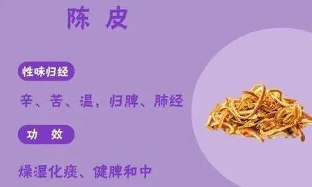 陈皮归脾、肺经,有燥湿化痰、健脾和中的作用。陈皮可以单独使用,也可和其他一些药材搭配,日常煮水饮用。