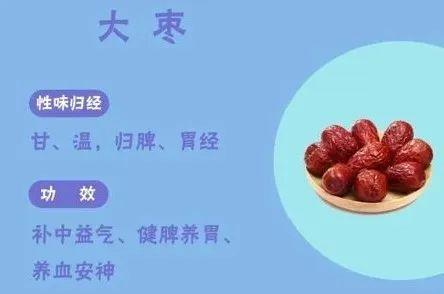 功效:生姜散寒解表,大枣甘温补中,大枣和生姜配伍,有辛甘化阳、促进脾胃运化的作用,多用于体质偏寒的人群。
