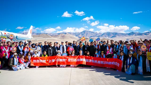 2023年5月19日,100名游客搭乘首架上海援藏旅游包机飞抵新落成的日喀则定日机场。