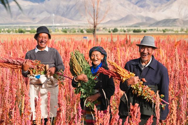 萨迦县麦农喜迎藜麦丰收。