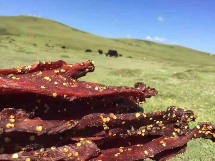 还会摄入虫草,贝母等名贵中草药,所以其口感风味以及营养价值,都是一般牛肉干比不了的。