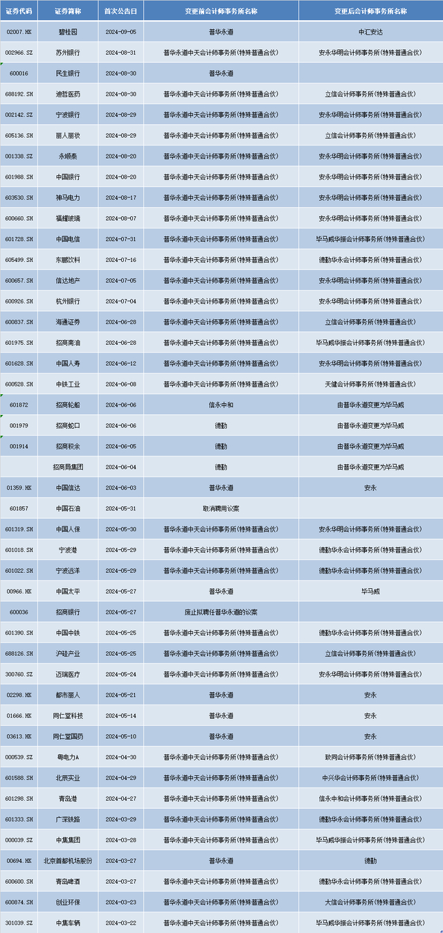 8月份,普华永道与华泰柏基金、南方基金、景顺长城基金、创金合信基金“分道扬镳”。