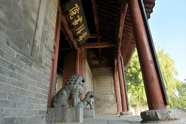 大门处,门额横匾上的“嵩阳书院”四个大字原匾为宋代苏东坡的墨宝,现为当代书法家宋书范书。