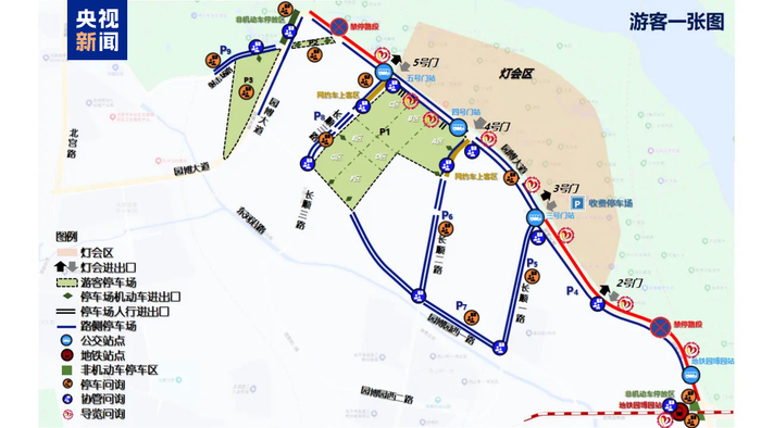 - 此外,为了方便游客停车,本次灯会还综合利用周边道路,开放了路侧停车,分别位于园博大道、长顺一路、长顺二路、园博西一路、长顺三路以及射击场路园林博物馆以西区域,标号为P4、P5、P6、P7、P8和P9停车场,如P1-P3停车场车位饱和,请您服从现场民警和交通疏导人员指挥,就近路侧停车。