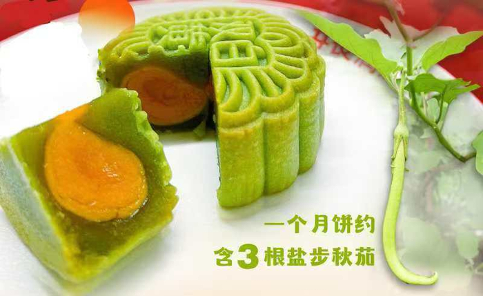 这其中,佛山首款秋茄月饼虽然小众但一上线就激起了当地人的关注。与经典的蛋黄莲蓉月饼不同,秋茄双黄白莲蓉月饼特色在于饼皮和馅料中都加了盐步秋茄。独特制法使得月饼的表皮与内馅均呈现出一种淡雅的翠绿色,口感上也增添了几分秋茄的清甜。