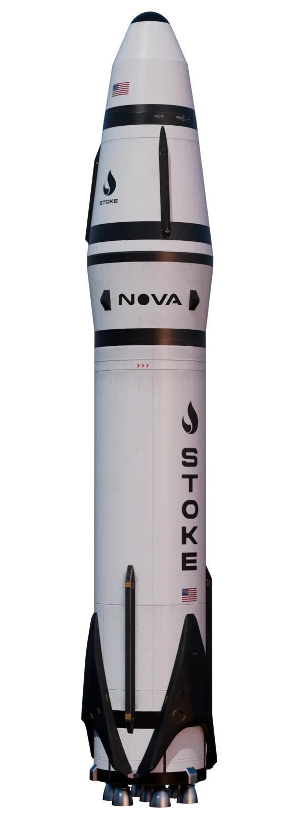 据资料,Stoke Space的首款火箭Nova是一枚两极的中型运载火箭,高30.5米,直径4米。