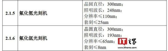 本次列出的包括氟化氪(KrF)和氟化氩(ArF)光刻机。