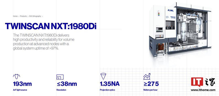 本次公开的国产氟化氩(ArF)光刻机的性能参数,与 ASML 的 TWINSCAN XT:1460K 较为接近。