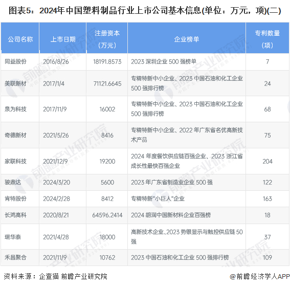 2、中国塑料制品行业上市公司基本信息对比