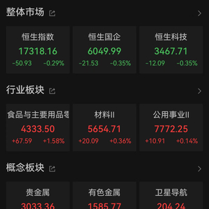行业板块方面,食品与主要用品零售、材料、商业和专业服务行业涨幅居前,分别上涨1.58%、0.36%、0.18%;半导体与半导体生产设备、食品饮料与烟草、多元金融行业跌幅居前,分别下跌1.55%、1.23%、1.16%。