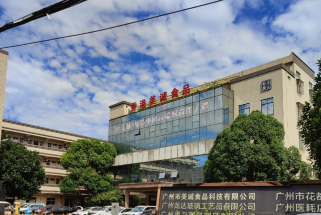 “香港美诚食品”的招牌矗立在楼顶,远远便能看到。主楼墙壁上还有“香港美诚”“美诚·缔造中国高端时尚伴手礼”字样。