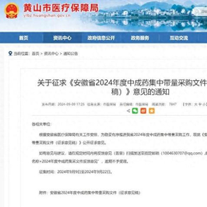 安徽省黄山市医保局发布的中成药集中带量采购文件的官方网页截图