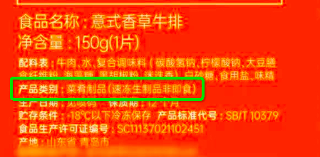 调理牛排写得多有“菜肴制品”字样。