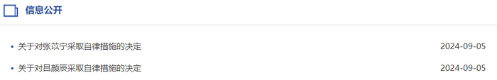 中证协称,考虑到张苡宁所在机构已因此对其采取降级、扣发奖金等内部问责措施,中证协决定对其采取认定十八个月不适合从事相关业务(全部证券业务)的纪律处分,并按规定记入中证协执业声誉信息库和证券期货市场诚信档案数据库。
