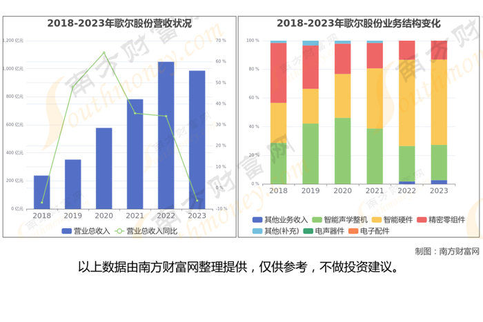歌尔股份于2008年5月22日在深圳证券交易所上市,股票代码002241。公司主营业务为精密零组件业务、智能声学整机业务和智能硬件业务。
