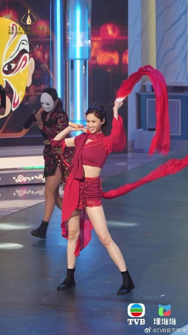 亚军梁嘉莹在才艺表演环节带来了精彩的中国大鼓表演。在问答环节,当被问及如果让她与熊猫一同宣传香港,她会怎么做?她表示希望跟熊猫一起演粤剧,还想设计一套熊猫专属的粤剧服装。这一回答让台下的港姐评委、八和会馆永远会长汪明荃忍俊不禁。