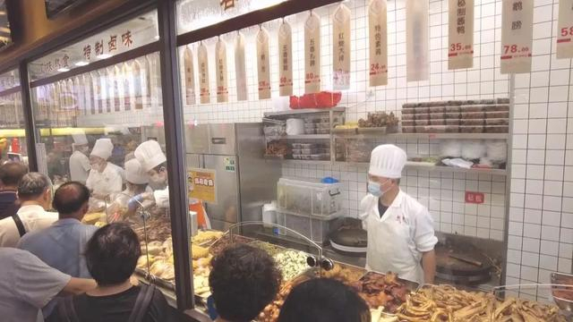 中秋佳节,家人团聚,不少市民外出采购,沪上老字号熟菜月饼销售火爆。一些商家也是延长营业时间,满足市场需求。