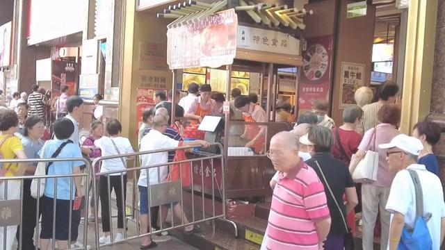 15日上午,记者在南京路步行街上看到,各家老字号前都排起了长队,新雅旗舰店前,买月饼的队伍被分成了好几拨,买熟菜和买半成品的市民也不在少数。