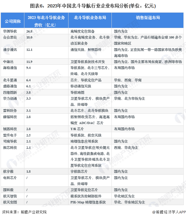 4、中国北斗导航行业企业布局及竞争力分析