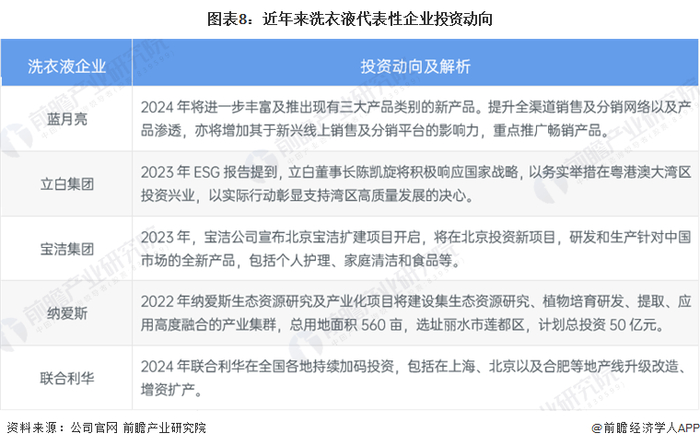 4、中国主要洗衣液企业最新投资:积极开拓市场和提升生产能力