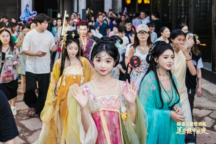 横店影视城以热播剧《莲花楼》为主题,策划打造与《莲花楼》相关的中秋晚会与集市。追剧人还可以在这里穿越回《甄嬛传》《墨雨云间》《陈情令》等剧集之中,开启横店巡礼之旅。此外,影视城同步还推出“玩景区、送住宿”、五折游横店圆明新园的优惠;卢宅景区举办中秋主题游园活动,乘坐高铁前来的游客可免费入园;花园天香湾景区推出五折门票优惠;南市街道梨枫村梨川漫谷景区的中秋游园会呈现了一场不一样的中秋盛宴等……种种优惠活动,以真心实意欢迎远道而来的客人们。