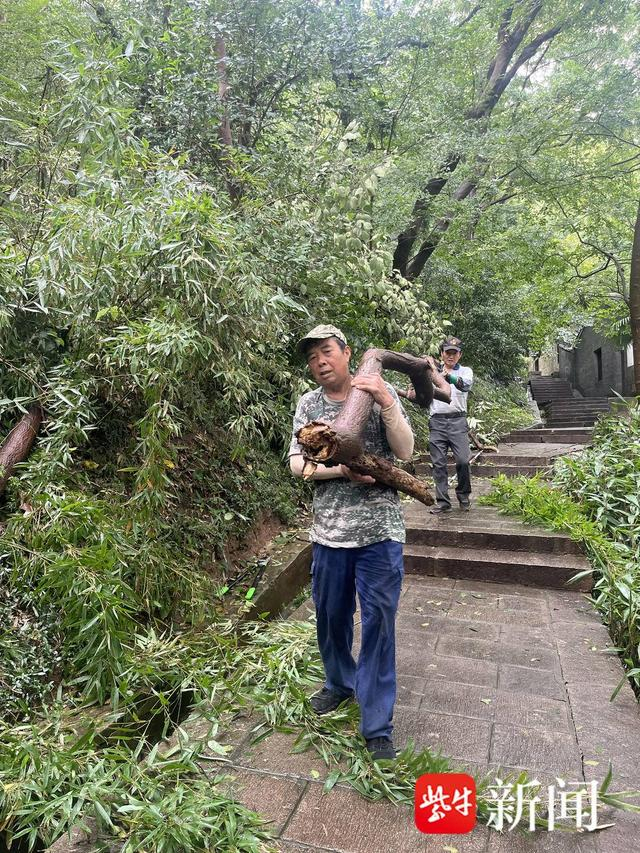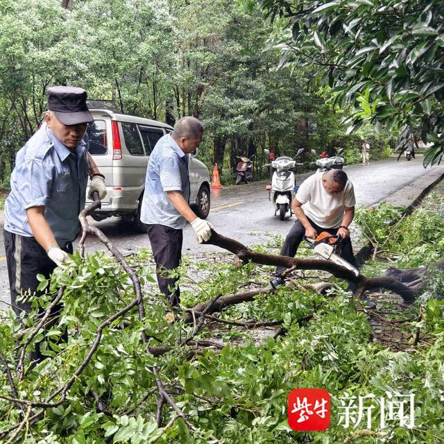 南山风景区则组织全体员工、映山红志愿服务队,及时开展地毯式排查抢险工作。他们先后对景区游步道、古建筑、倒伏树木等进行排障抢险,共清理倒伏树木30多棵,迅速恢复受灾现场,保障景区正常运营。