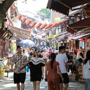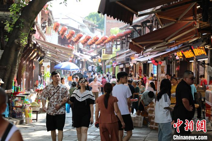 9月17日,重庆市发布高温橙色预警信号。当天,沙坪坝磁器口景区内游人如织,各地游客打卡“火炉”重庆的热情丝毫未减。梁钦卿 摄
