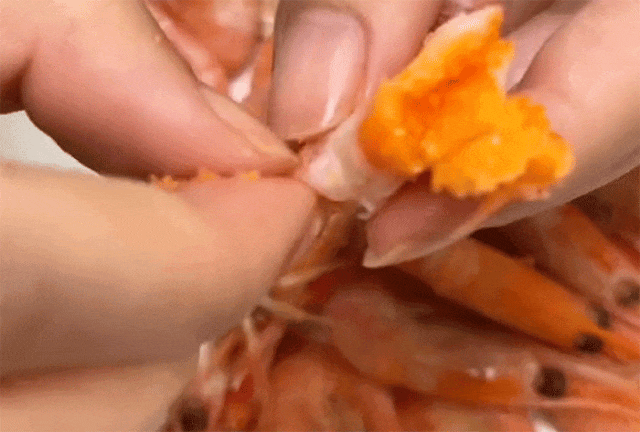 北极甜虾蕞为珍贵的就是这一口鲜美的虾籽了~