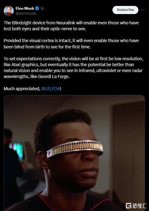 马斯克“脑机接口”公司新进展:“盲视”设备获FDA突破性医疗器械认证!