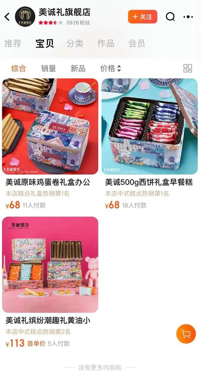 同时,“疯狂小杨哥”及其公司旗下账号橱窗中也已没有美诚品牌月饼。