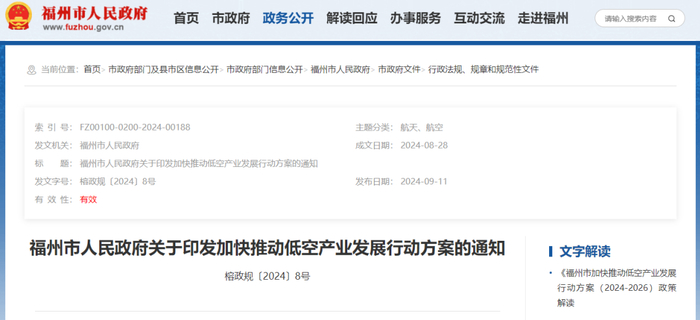 目标明确!福州成立低空产业专项工作小组(全文+解读)
