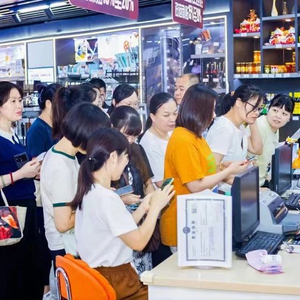 在通程电器东塘店内,“以旧换新”标识十分醒目。这里的商品根据能效或水效等级不同有各自的补贴价签,具体能补贴多少金额,顾客一目了然。收银台前挤满了等待付款的消费者。