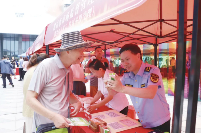9月3日,黄石市市场监管局工作人员在“药品安全宣传周”启动仪式现场向群众讲解安全用药知识。